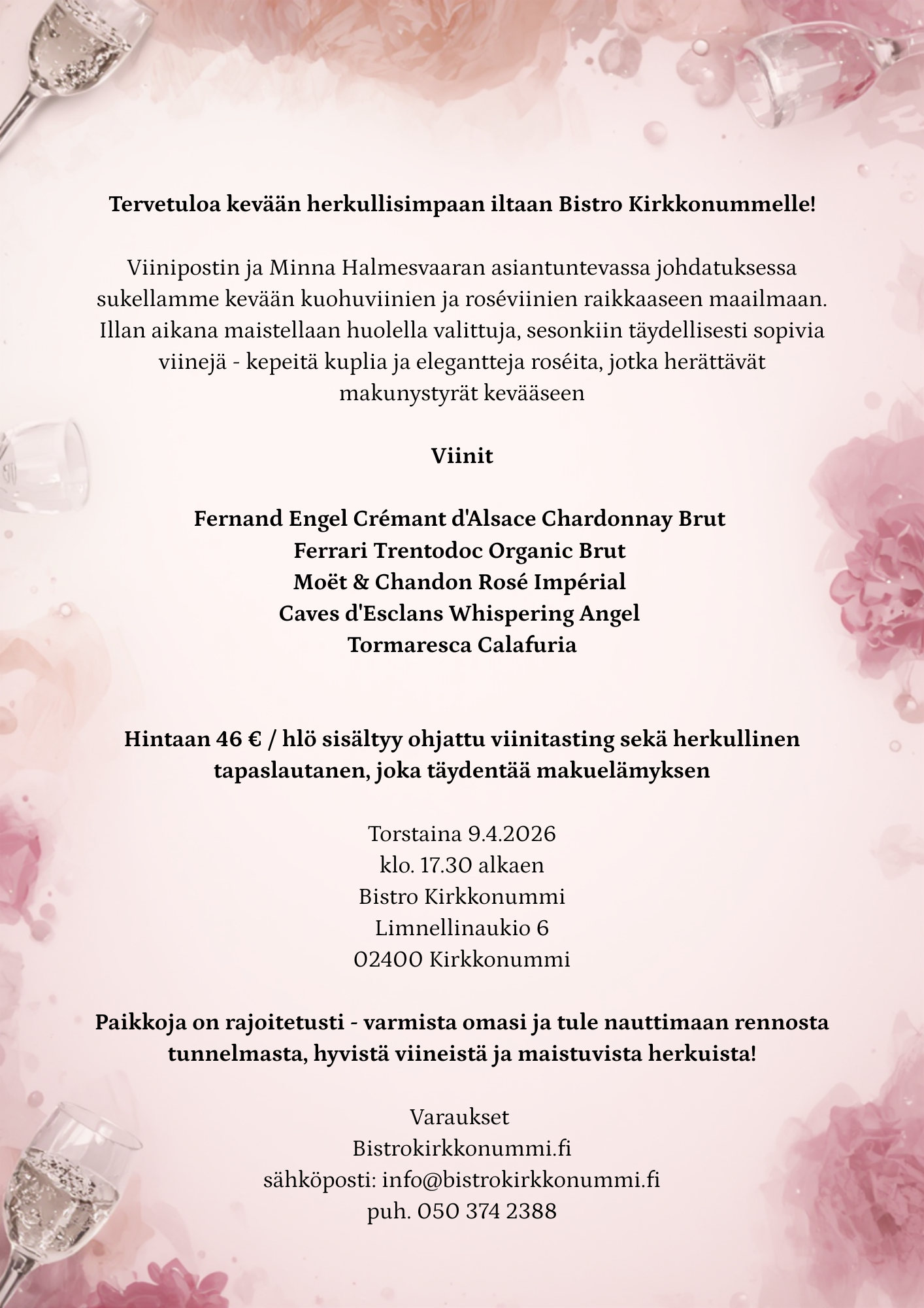 Tervetuloa viettämään äitienpäivää Bistro Kirkkonummelle!