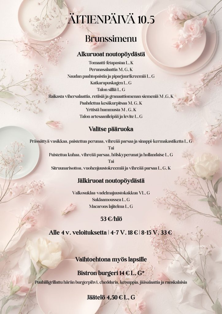 Tervetuloa juhlistamaan äitienpäivää kanssamme lämpimän tunnelman ja herkullisten makujen parissa!